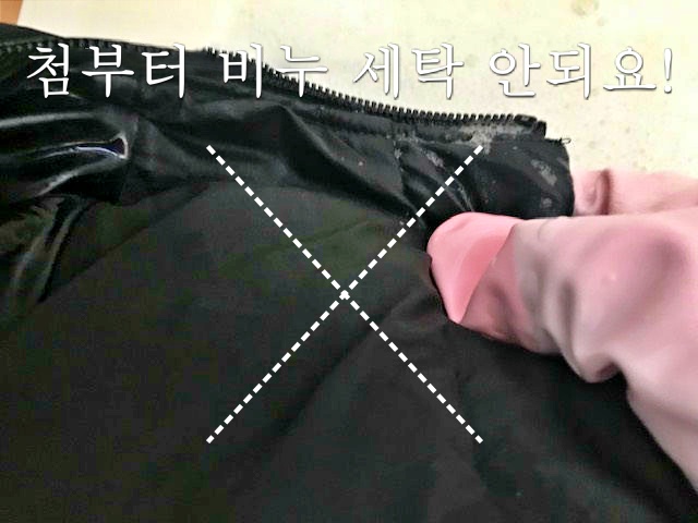 패딩 목부분을 한번 더 닦아요.